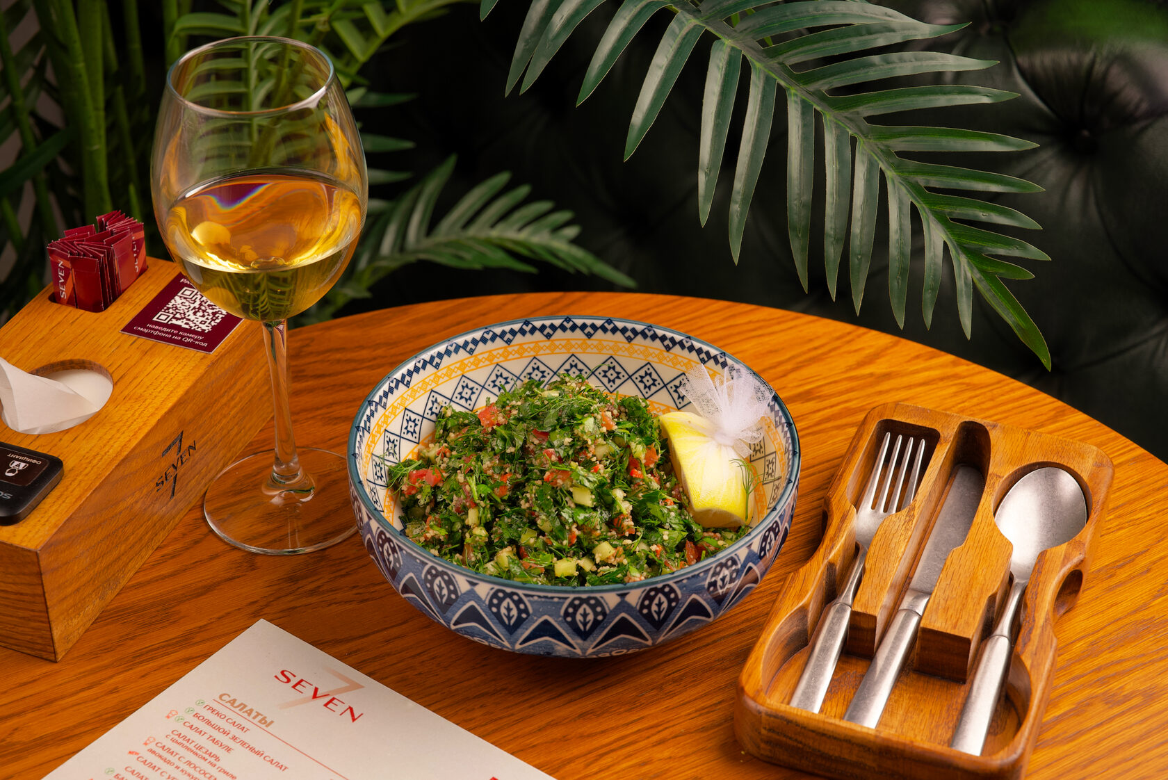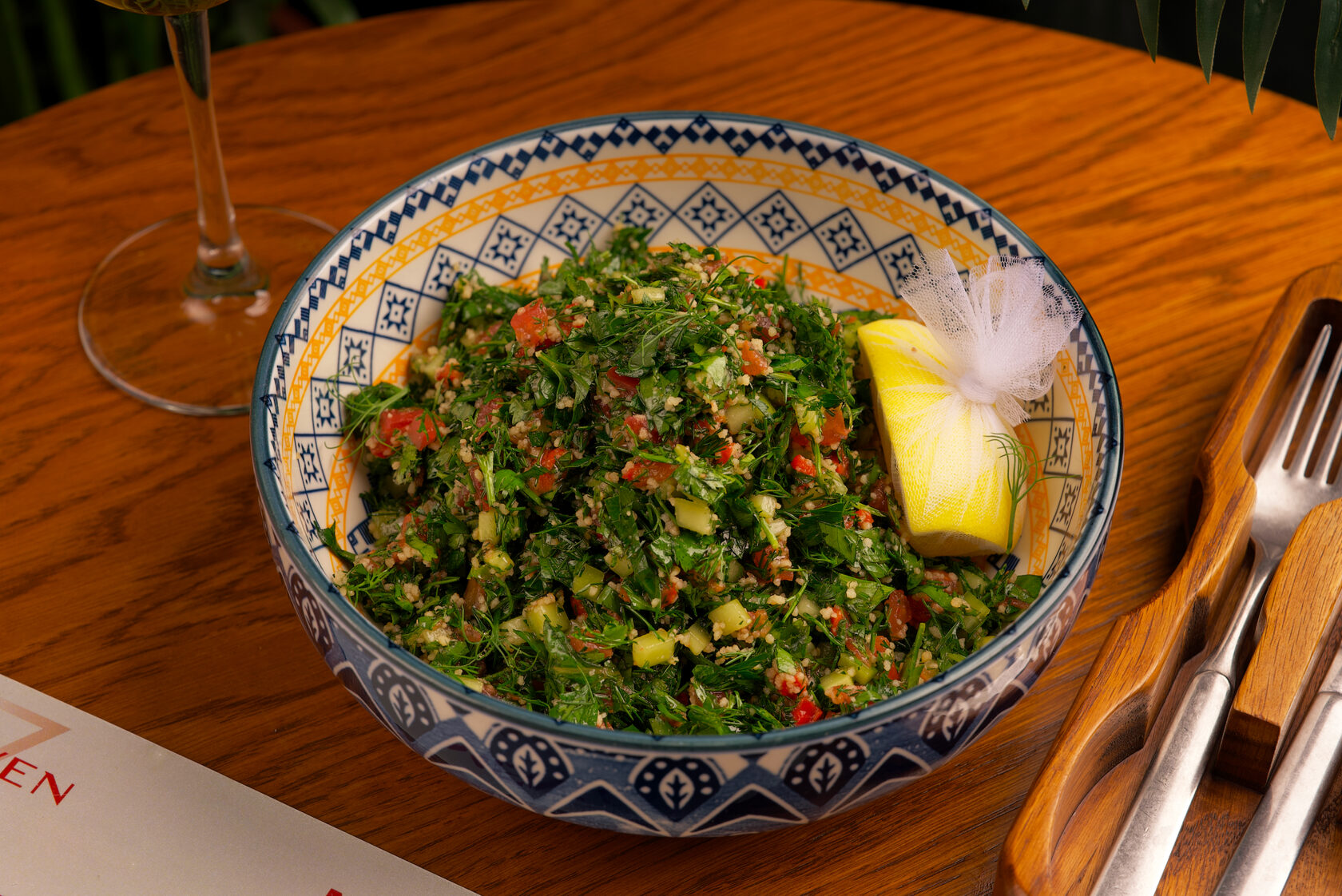 Салат Табуле — это популярное блюдо ближневосточной кухни, основанное на булгуре или киноа, с добавлением свежих овощей, таких как помидоры, огурцы, зелёный лук и много петрушки. Салат заправляется оливковым маслом, лимонным соком и мятой, что придаёт ему лёгкий и освежающий вкус. Табуле является идеальным гарниром или лёгким самостоятельным блюдом.