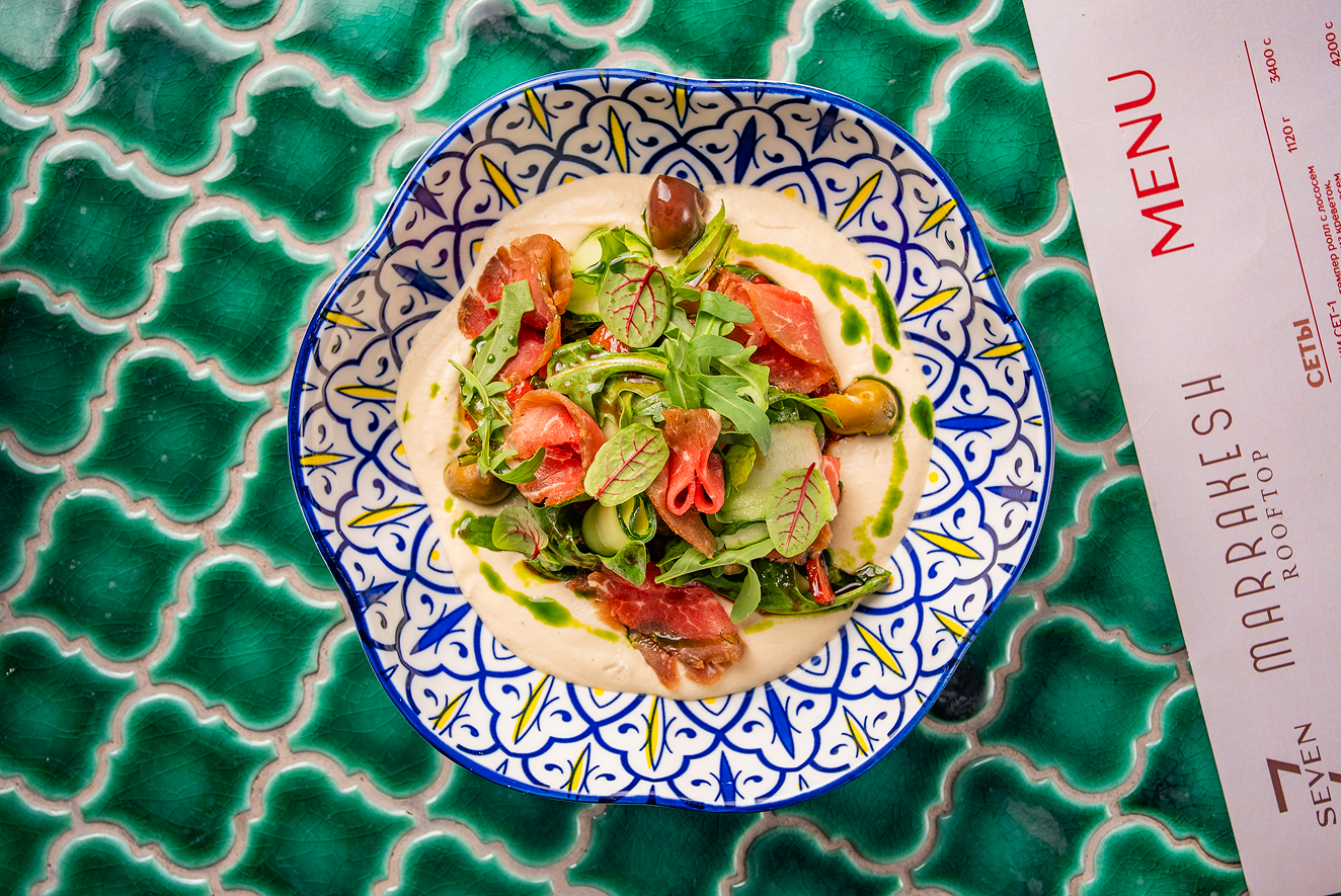 Spicy veal salad is a rich and flavorful dish featuring tender pieces of veal combined with spicy ingredients such as chili, radish, or garlic. The salad may also include fresh vegetables like cucumbers and tomatoes, while a dressing made of soy sauce, lemon juice, and olive oil gives the dish a vibrant and zesty taste.
