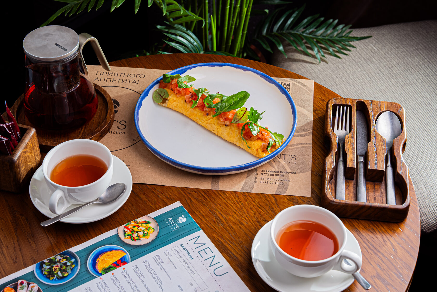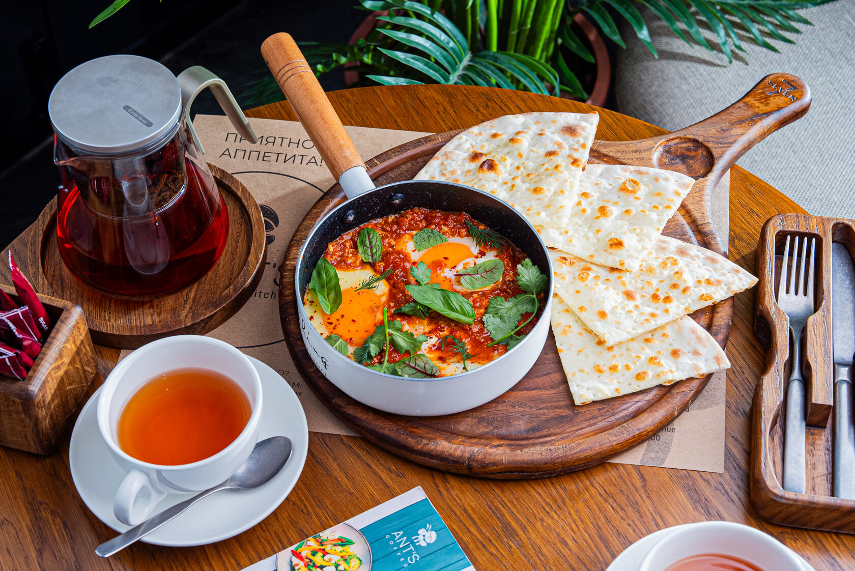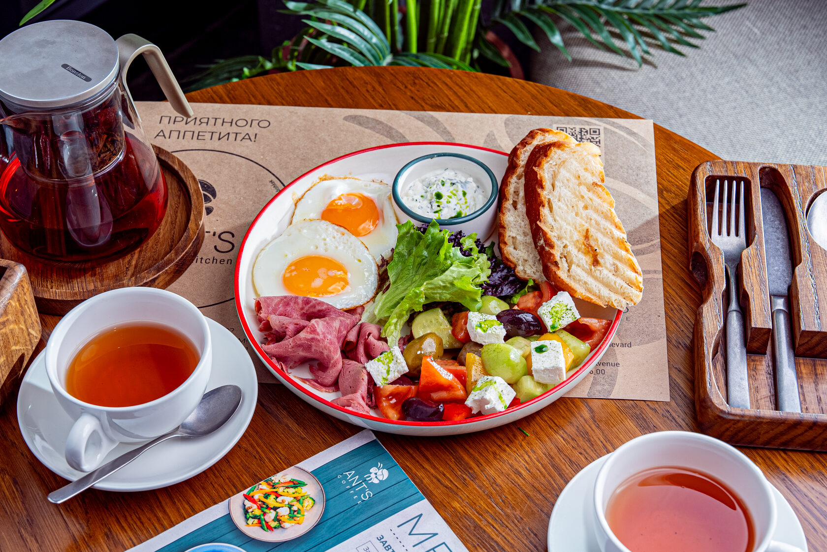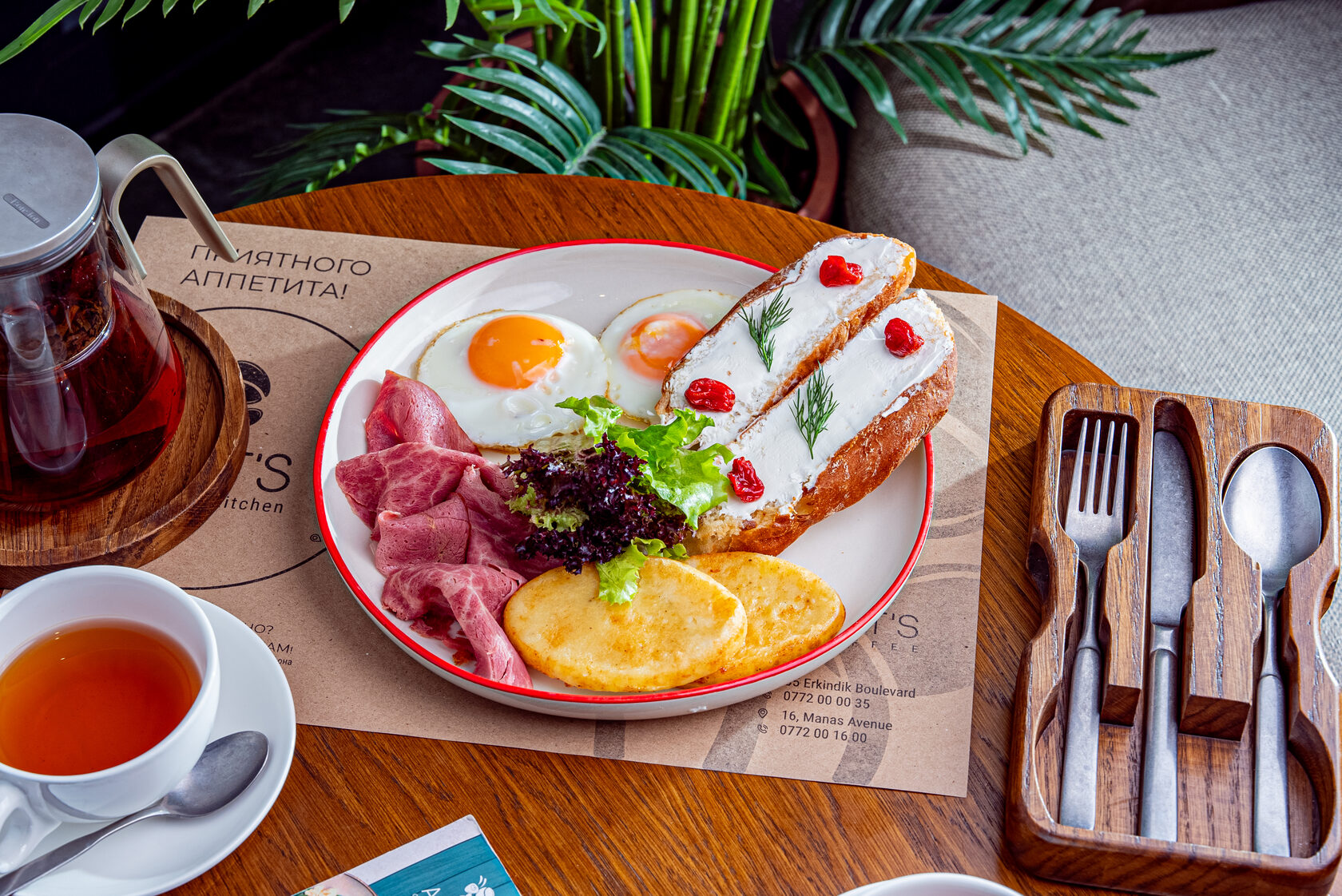 Каша – рис, гречка или овсянка, приготовленные на молоке, воде или кокосовом молоке, с добавлением сливочного масла. Подается с гранолой, орехами и свежими фруктами по сезону.