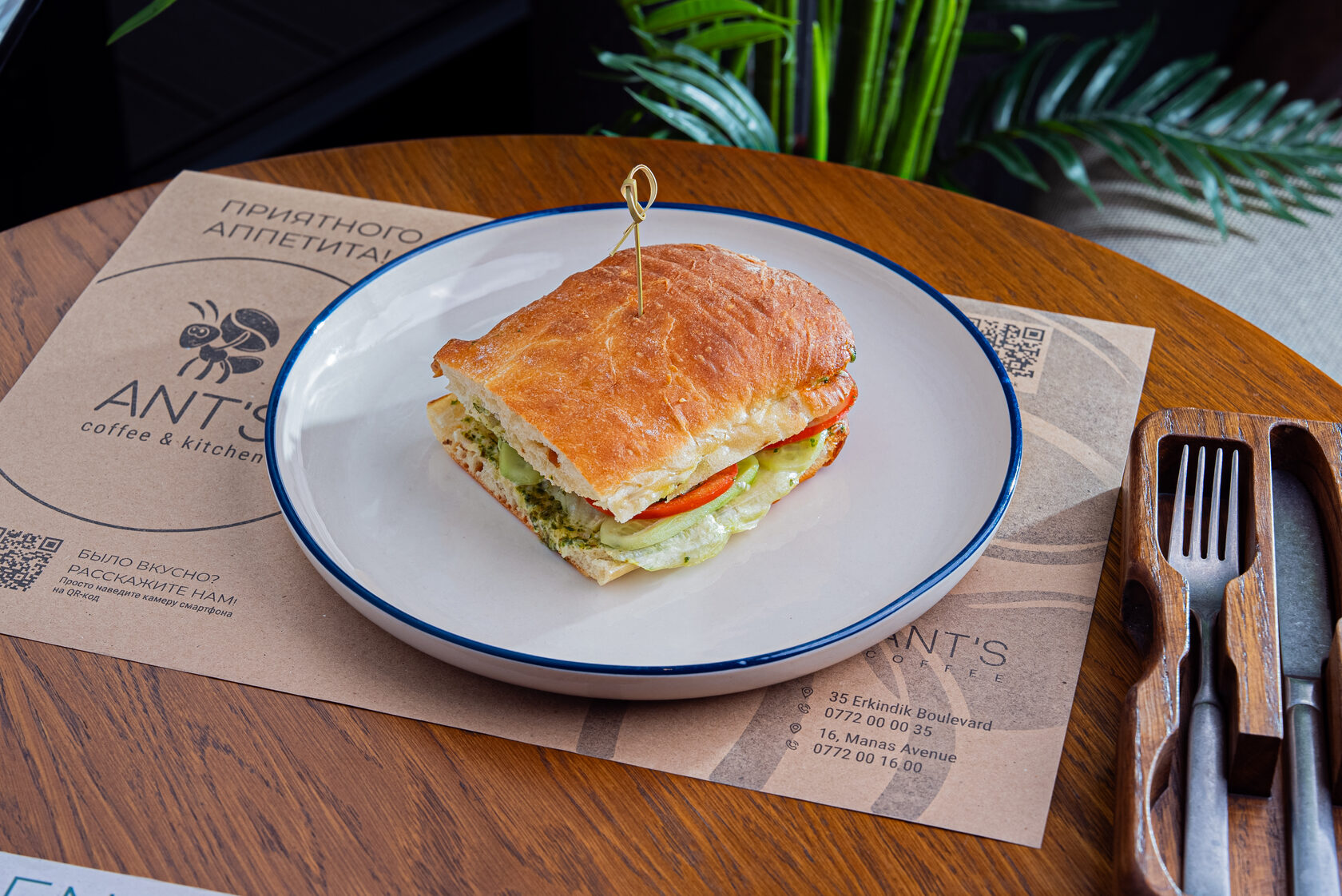Сэндвич "Цезарь" – белая чиабатта с куриной грудкой, сыром чеддер и жареным яйцом. Подаётся с соусом Цезарь и песто, свежими огурцами и хрустящим листом салата. 🥪🍗🧀