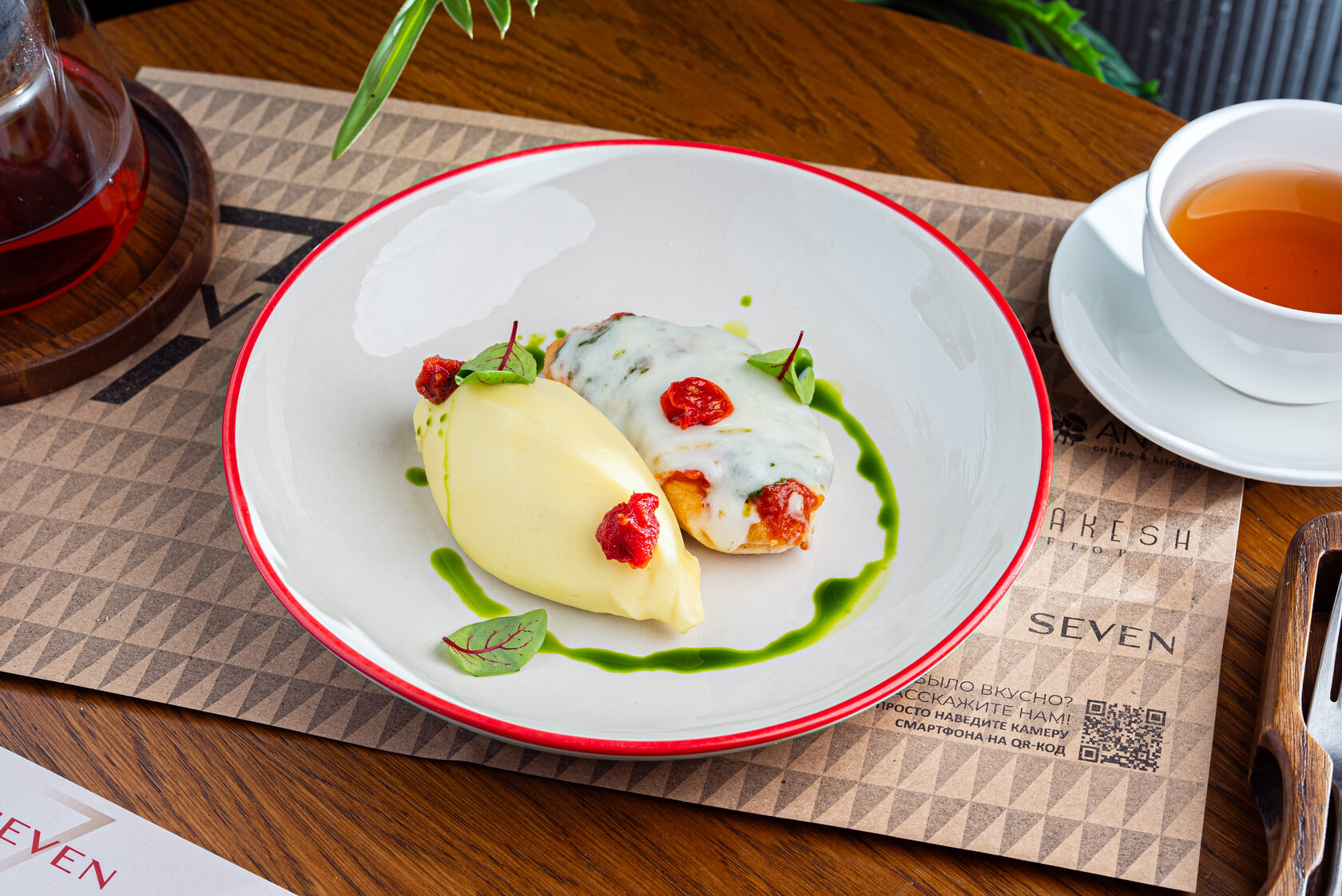 Говяжий язык на гриле с картофелем мини и копченой сметаной — изысканное блюдо с насыщенным вкусом. Нежный язык, обжаренный до золотистой корочки, подаётся с мягким картофелем и ароматной сметаной с дымком. Гармония текстур и ароматов в каждой порции!