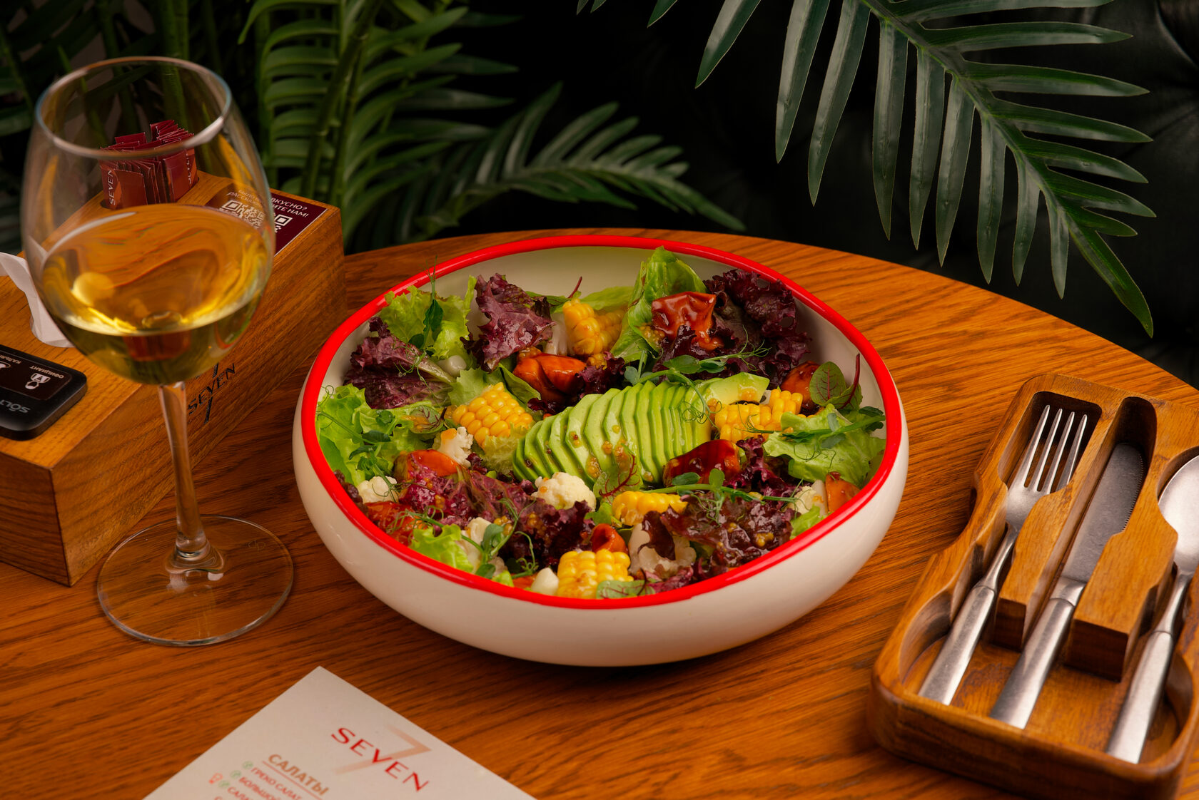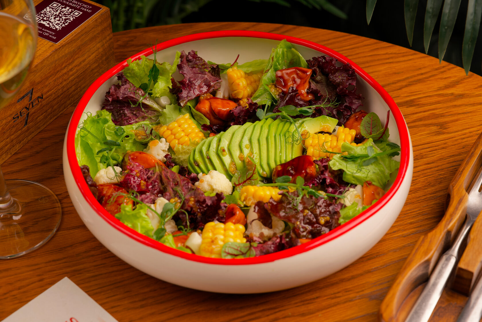 Салат с лососем, авокадо и кукурузой — это лёгкое и питательное блюдо, где свежий лосось (можно как в сыром, так и в копчёном виде) сочетается с мягким авокадо и сладкой кукурузой. Этот салат часто заправляется оливковым маслом, лимонным соком или соевым соусом, подчеркивая свежесть и баланс вкусов.