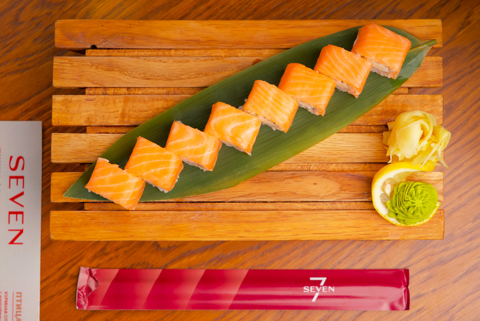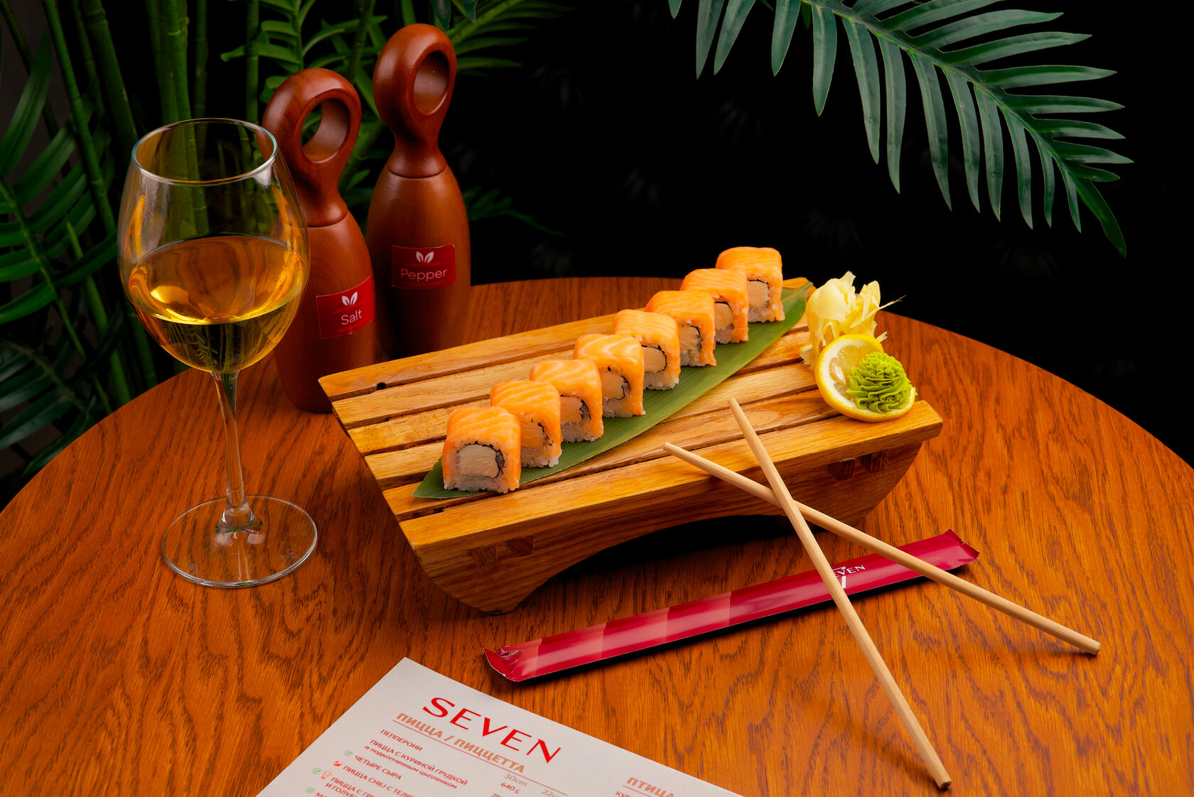 Филадельфия — роллы с нежным сливочным сыром, свежим лососем, авокадо и огурцом, завёрнутые в морскую водоросль нори и посыпанные кунжутом. Идеальное сочетание мягкости и свежести.