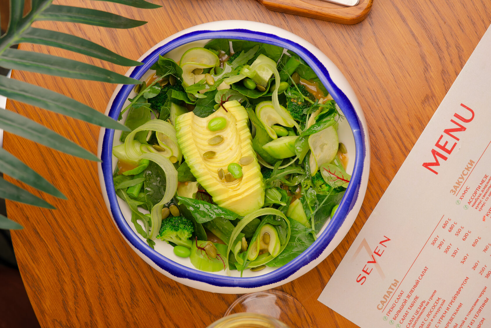 Большой зелёный салат — это салат, состоящий преимущественно из свежих зелёных листьев, таких как ромэн, айсберг, шпинат или руккола. Его часто дополняют огурцами, авокадо, редисом или зелёным луком, а заправляют оливковым маслом, лимонным соком или лёгким бальзамическим уксусом. Этот салат лёгкий, свежий и питательный, идеально подходящий как гарнир или основное блюдо.